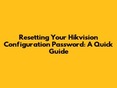 Resetting Your Hikvision Configuration Password: A Quick Guide