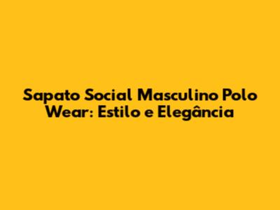 When it comes to men's fashion, sapato social masculino Polo Wear stands out as a symbol of elegance and refinement. Guys, if you're looking to elevate your style game, investing in a pair of these sophisticated shoes is a step in the right direction. Whether you're dressing up for a formal event, a business meeting, or simply want to add a touch of class to your everyday attire, Polo Wear's collection offers a variety of options to suit your needs. Let's dive into what makes these shoes a must-have in any modern man's wardrobe.