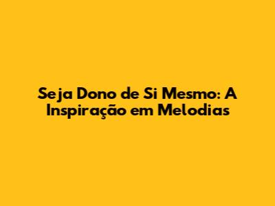 Seja Dono De Si Mesmo: A Inspiração Em Melodias