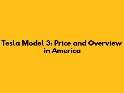 Tesla Model 3: Price And Overview In America