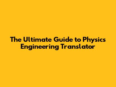 The Ultimate Guide To Physics Engineering Translator