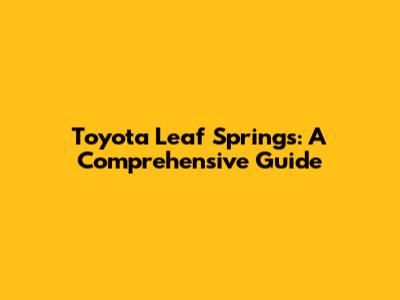 Toyota Leaf Springs: A Comprehensive Guide