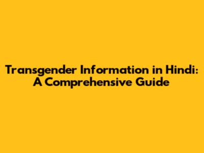 Transgender Information In Hindi: A Comprehensive Guide