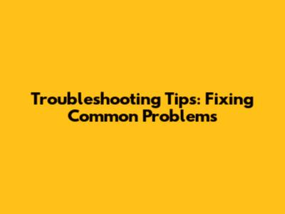 Troubleshooting Tips: Fixing Common Problems
