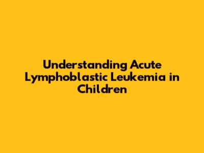 Understanding Acute Lymphoblastic Leukemia In Children