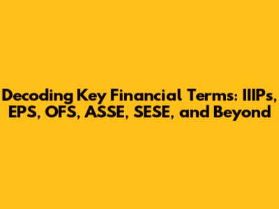 Hey guys! Ever feel like you're drowning in alphabet soup when reading about finance? Acronyms like IIIPs, EPS, OFS, ASSE, and SESE can make even seasoned investors scratch their heads. But don't worry, we're here to break down these terms in a simple, easy-to-understand way. Think of this as your friendly guide to navigating the financial world, one acronym at a time. We'll explore what each of these terms means, why they matter, and how they fit into the bigger picture of finance and investment. So, grab a cup of coffee, settle in, and let's demystify these financial concepts together! Understanding these terms is crucial for anyone looking to make informed investment decisions or simply stay up-to-date with the latest financial news. Let's dive in!