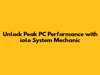 Unlock Peak PC Performance With Iolo System Mechanic