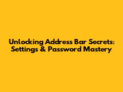 Unlocking Address Bar Secrets: Settings & Password Mastery