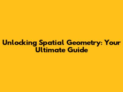Unlocking Spatial Geometry: Your Ultimate Guide