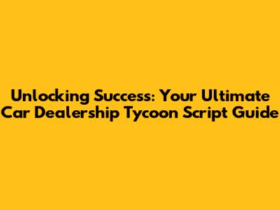 Unlocking Success: Your Ultimate Car Dealership Tycoon Script Guide