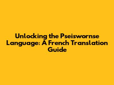 Unlocking The Pseiswornse Language: A French Translation Guide