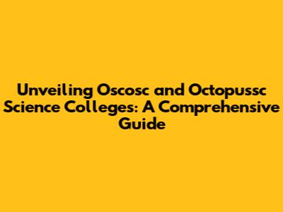 Unveiling Oscosc And Octopussc Science Colleges: A Comprehensive Guide