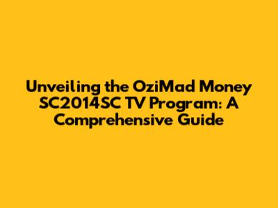 Unveiling The OziMad Money SC2014SC TV Program: A Comprehensive Guide