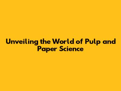 Unveiling The World Of Pulp And Paper Science