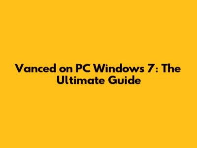 Vanced On PC Windows 7: The Ultimate Guide