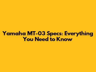Yamaha MT-03 Specs: Everything You Need To Know