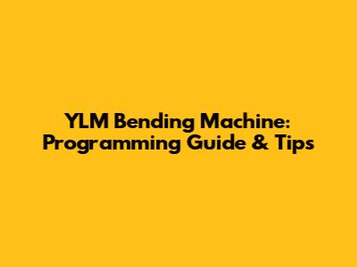 YLM Bending Machine: Programming Guide & Tips